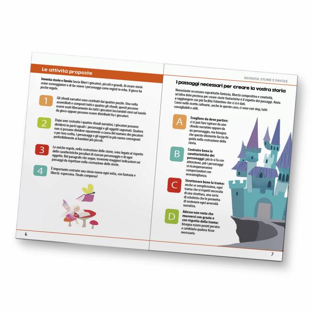 Ascoltare e comprendere; Inventare storie e raccontare; Imitare e animare; Identificarsi nei personaggi di fantasia; Memorizzare parole e testi; Intelligenza prevalente coinvolta: linguistica; Altre intelligenze coinvolte: visivo-spaziale, personale.