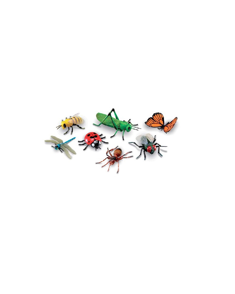 Confezione di 7 insetti composta da: cavalletta, mosca, farfalla, coccinella, libellula, ape e formica. Dimensioni farfalla 20x13 cm. Età 3+ anni.