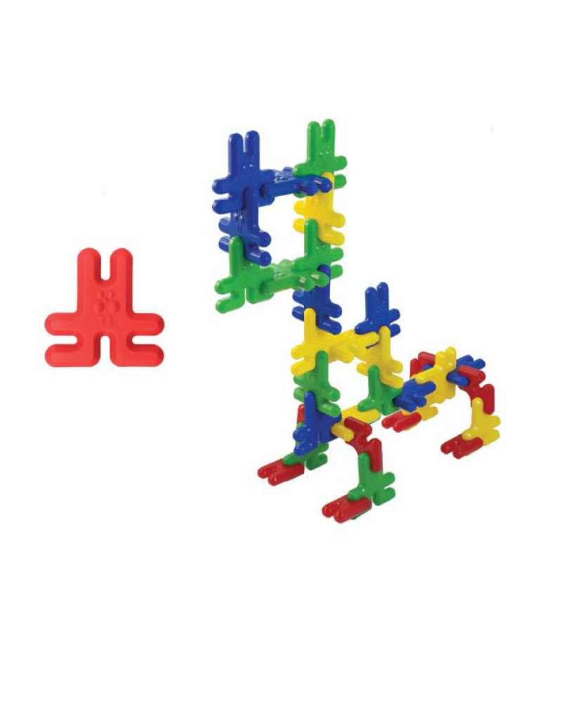 Costruzioni in morbida e robusta plastica arrotondata, con incastro a pettine, facili da assemblare per formare infinite composizioni. Venduti in una scatola con guida didattica. Dimensioni 8 cm. Da 18 mesi