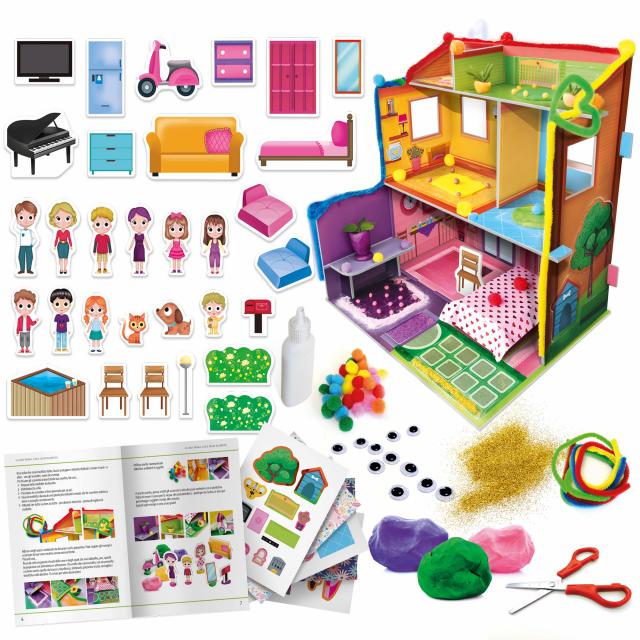 Costruisci la tua casa delle bambole e libera la creatività e la fantasia con il ricco kit in dotazione. Puoi animare i personaggi e inventare tante storie!