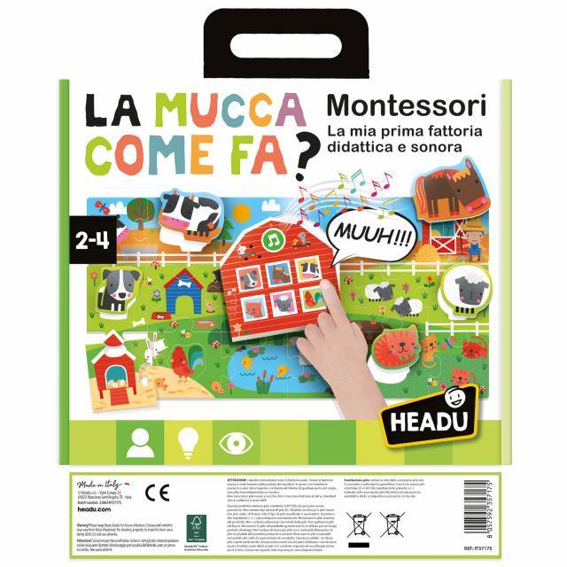 Qual è il verso del cavallo? Ascoltalo! E la mucca... come fa? Con questo gioco i bambini associano gli animali ai loro versi, ascoltando i suoni dell’allegra fattoria sonora e associandoli alle sagome del coloratissimo puzzle-ambiente. CONTENUTO: 1 grande puzzle-attività; 1 modulo sonoro; 6 sagome di animali; Istruzioni.