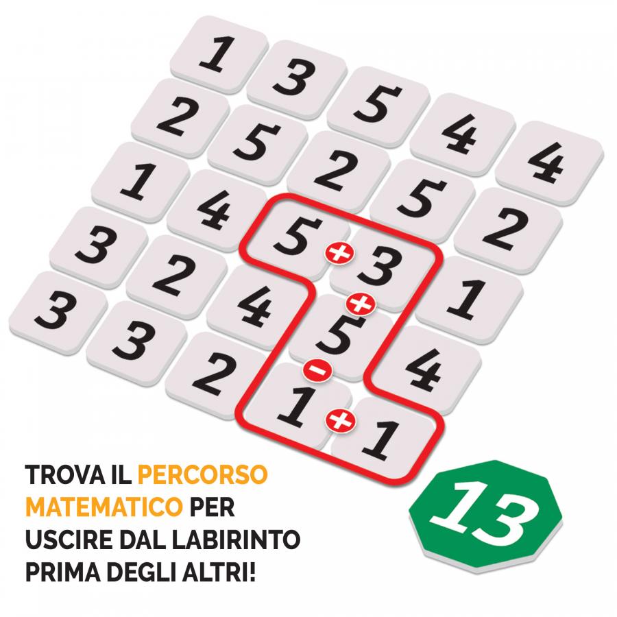 Osserva i numeri e trova il percorso matematico per uscire dal labirinto prima degli altri, centrando l’obiettivo! Un gioco di calcoli mentali e rapidità per tutti, adrenalinico e coinvolgente!