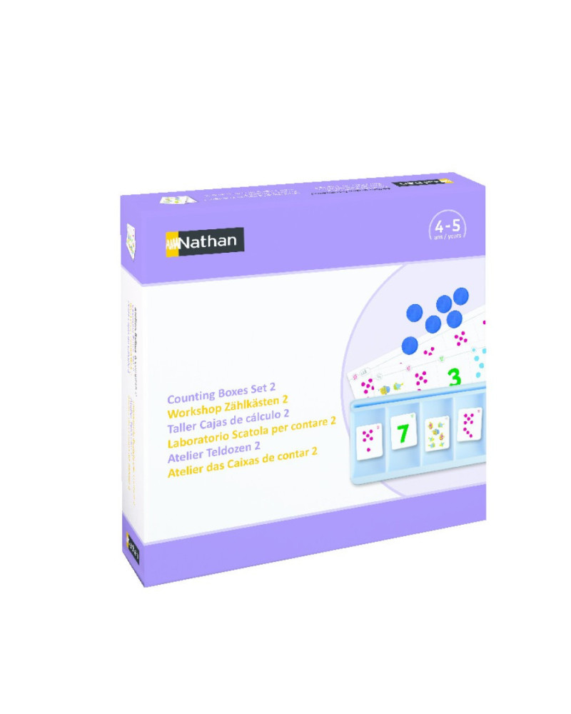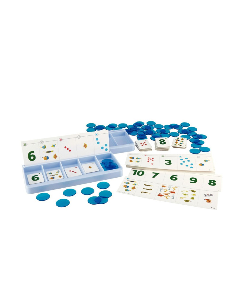 Attraverso attività pratiche con segnapunti a forma di dado, elementi figurativi, numeri e gettoni rotondi in plastica, i bambini imparano ad associare diverse rappresentazioni dei numeri da 0 a 10. Ogni bambino ha una scatola per il conteggio contenente una scheda con le istruzioni. Utilizzano i gettoni per riempire i compartimenti della scatola seguendo le indicazioni della scheda. I bambini possono lavorare in coppia. Per coinvolgere da 2 a 4 bambini in più, è sufficiente aggiungere 1 o 2 set di estensione codice G63269. Contenuto: 24 schede con istruzioni suddivise in 4 set da 6 schede ciascuno 25,5 x 8,5 cm, 2 scatole per il conteggio in plastica 27 x 12 cm, 38 gettoni in cartoncino 5,5 x 4,5 cm, 65 gettoni rotondi in plastica e 1 guida didattica. Per 2 bambini.