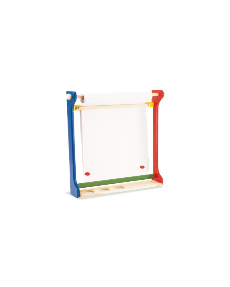 Una pratica struttura da muro dotata di rotolo di carta; uno spazio pittura sempre a disposizione senza ingombri a pavimento. In legno massello; misura cm 11,5 x 60 x 86 h.