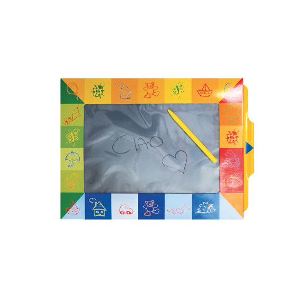 Con la lavagna magica disegnare non è mai stato così facile e divertente. Con l’apposita penna si può disegnare sulla lavagna tutto ciò che si desidera, poi basta tirare la linguetta…. ed è subito magia! Tutto scompare ed è pronta per essere riutilizzata infinite volte. Ideale per sviluppare la creatività del bambino. Lavagna magica, dimensioni cm. 27 x 19.