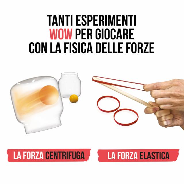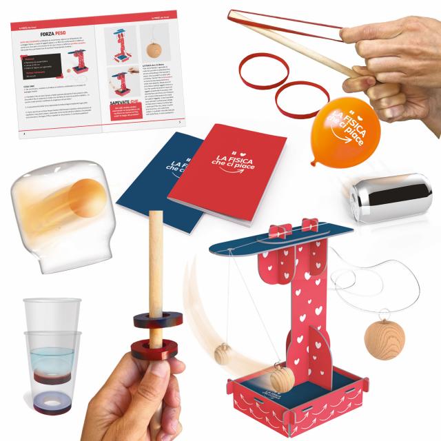 Ciao Lovvini! Siete pronti per una serie di avventure alla scoperta delle forze che agiscono in natura? Ecco a voi un set completo di materiali originali, studiati per realizzare facilmente gli esperimenti che vi faranno scoprire tutti i segreti della fisica delle forze! CONTENUTO: Pendolo da montare; Mela in legno con gancetto; Lenza da 60 cm; Giara in plastica; Pallina da ping pong; 2 quaderni da 48 pagine, 2 magneti; Bastoncino di legno; 3 elastici; Palloncino di plastica; Lattina di alluminio; Manuale della Fisica che Ci Piace.