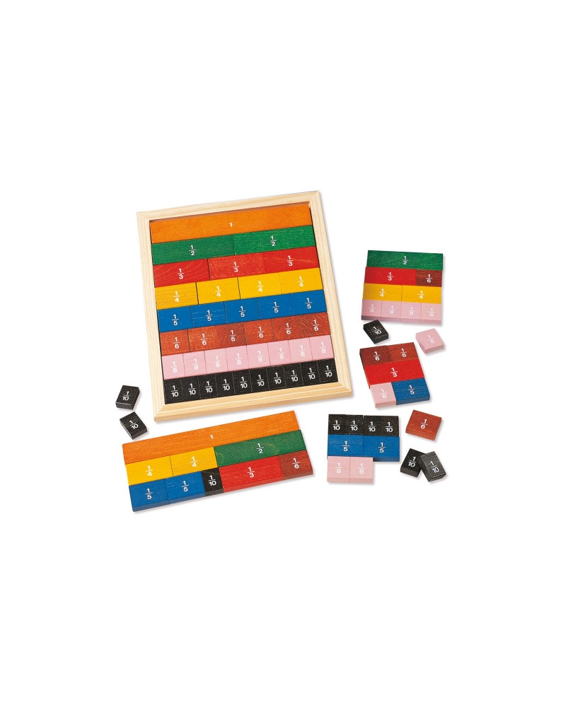 Comprensione delle frazioni in base alla suddivisione dell’unità. In legno; misura cm 23 x 27 x 1,5h.