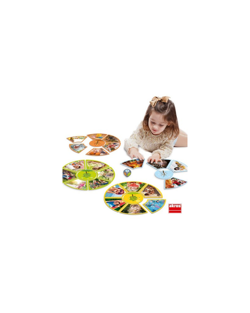 Il gioco consiste nel mettere le quattro carte rotonde che mostrano le stagioni dell’anno a faccia in su. A turno, ogni giocatore lancia i dadi e, a seconda della stagione mostrata, cerca una carta corrispondente a quella stagione nella pila di carte. Se non ci sono più carte per quella particolare stagione, il turno passa al giocatore successivo. Il gioco finisce quando tutte e quattro le stagioni sono state completate con tutte le 34 carte. Da 2 a 5 giocatori. Da 3+ anni.