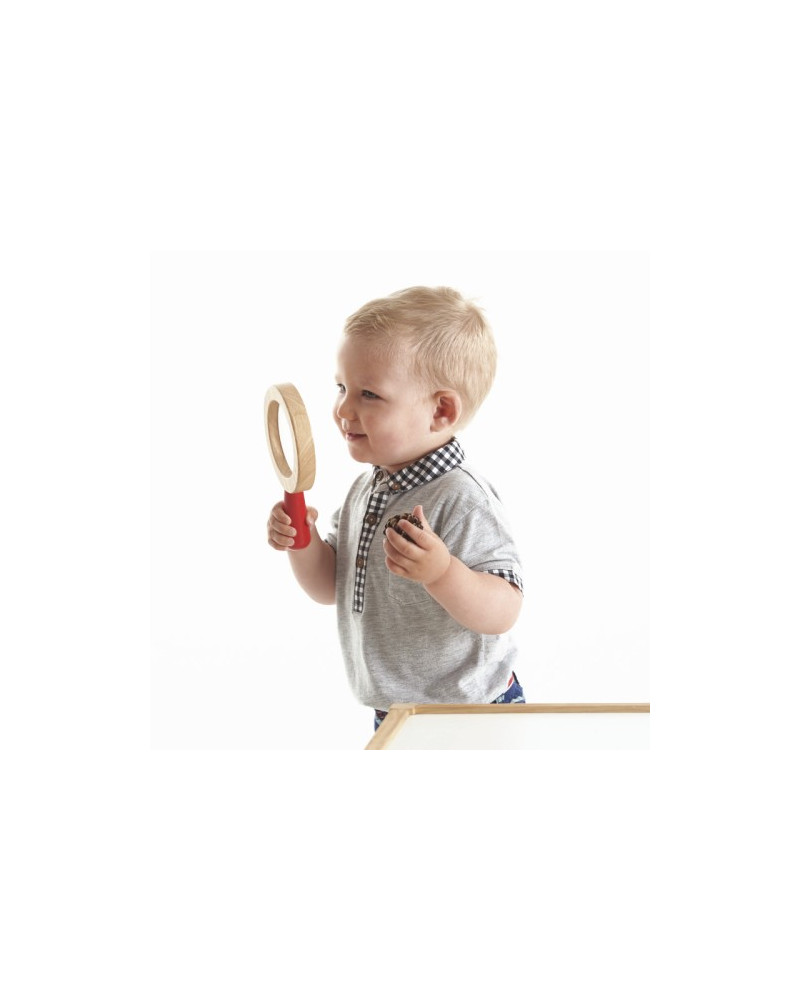 Lente con manico e bordo in legno, lente in plastica con ingrandimento 2x più lente interna con ingrandimento 3x. Un ottimo aiuto per l'osservazione. Dimensioni: diametro 10 x 18 cm.