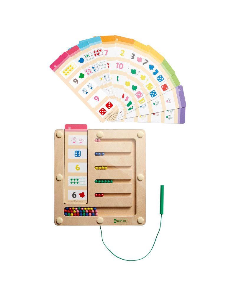 Utilizzando la penna magnetica, il bambino posiziona una ad una le palline magnetiche sulla linea corretta per rispondere alle istruzioni riportate sul foglio. I 12 fogli, fronte-retro, propongono 24 attività organizzate in 6 serie. Questo gioco sviluppa la motricità fine, la concentrazione e l' attività di decodifica-codifica dei numeri da 0 a 10. Contiene: 12 carte, con 24 attività 21 x 6 cm; 50 sfere di metallo e 1 base in legno 25,4 x 24,2 x 1,6 cm.