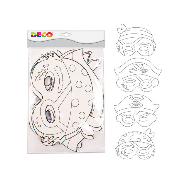 Set pirati maschere in cartone da decorare con 12 cordoncini