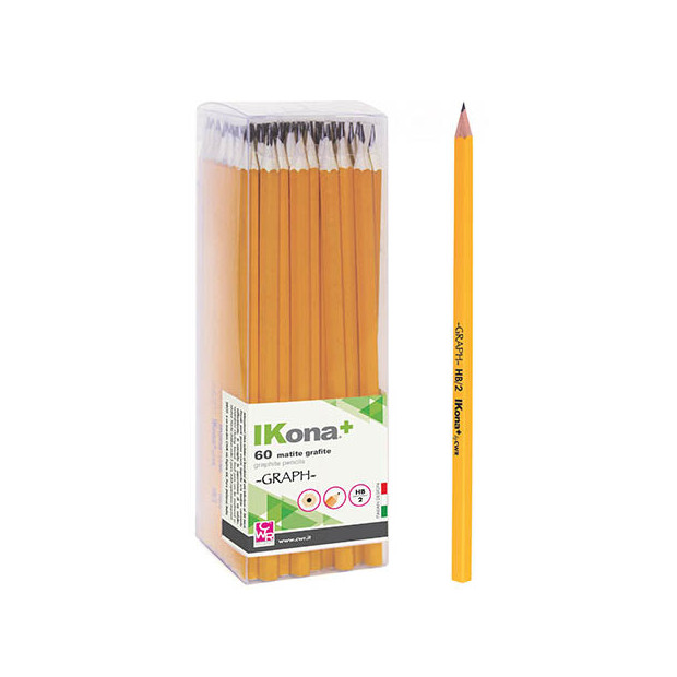Matite esagonali dal corpo giallo diametro 0,8 cm., lunghezza 18 cm. Disponibili con o senza gomma, in scatola da 12 pz o in barattolo da 60 pz.