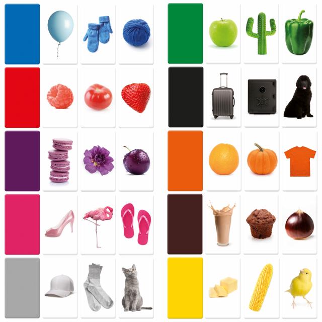 Rosso, giallo, blu... Scopri i colori, mettili in gradazione e riconosci le tonalità osservando i soggetti sul retro delle flashcards.