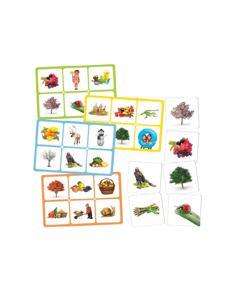 Gioco in cui si associano le tessere fotografiche sui tabelloni con le foto proposte o secondo la stagione indicata sul retro di ognuna di esse. Utilizzate da sole, le schede fotografiche costituiscono una banca di immagini e promuovono attività di classificazione e associazione. La scatola contiene: 4 tabelloni fotografici in cartone bifacciale 33 x 23 cm e 24 tessere fotografiche 10 x 10 cm. Da 4+ anni.
