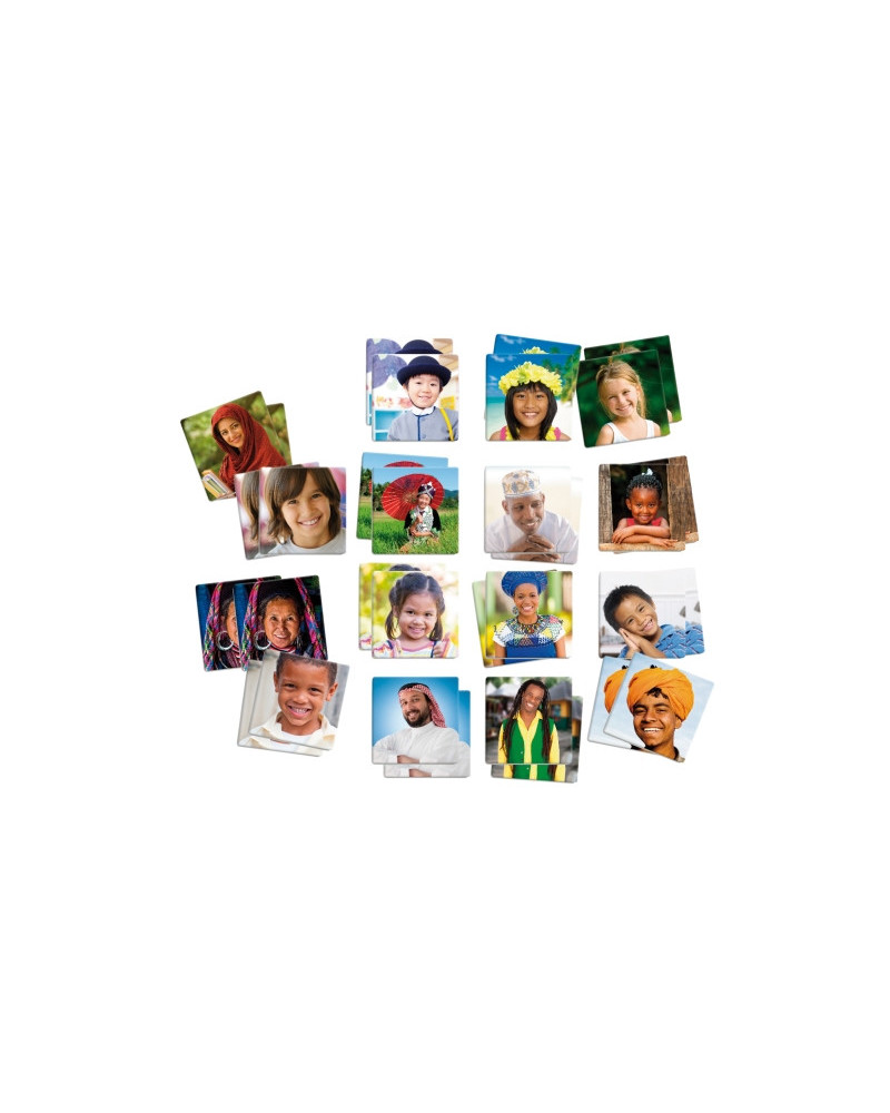 Un grande memory illustrato che celebra la diversità culturale, promuovendo valori fondamentali come rispetto, uguaglianza, solidarietà e inclusione. Un gioco coinvolgente pensato per stimolare la conoscenza dell’altro, incoraggiando empatia e curiosità verso le persone di tutto il mondo. In cartone; 34 tessere fotografiche di 9 x 9 cm. Da 3+ anni.