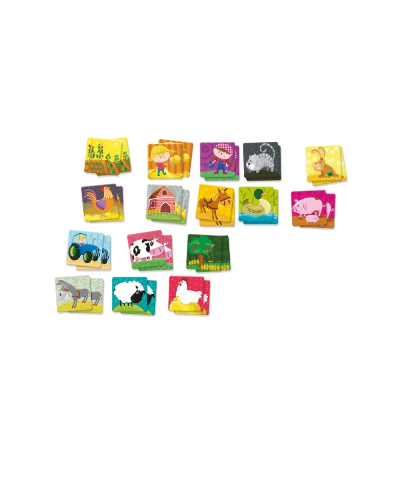 Gioco di memoria in cartone di grande qualità composto da 34 tessere di lato 8,5 cm. Da 3+ anni.