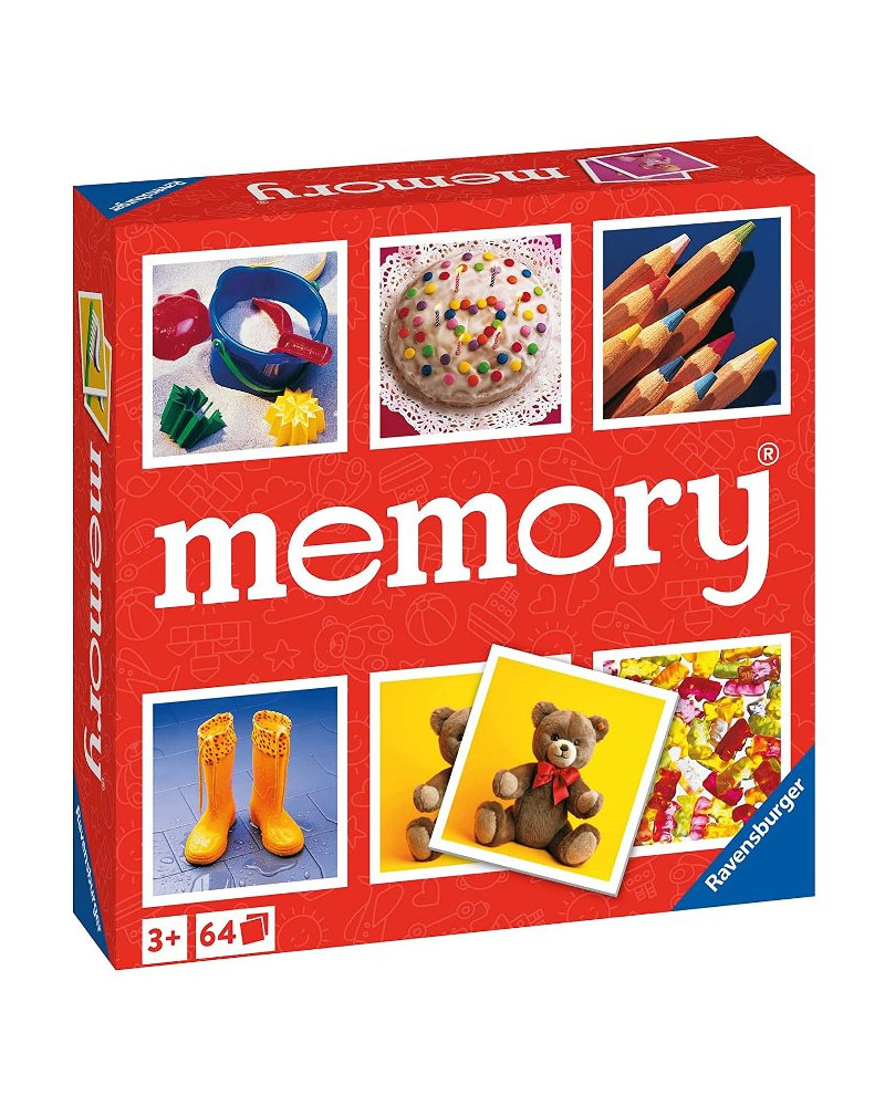 Il Memory Junior contiene 64 tessere con 32 immagini di coloratissimi oggetti. Da 2 a 8 giocatori. Da 3+ anni.