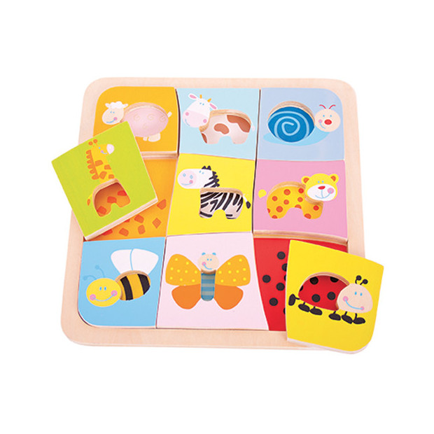 Mini Puzzle in legno “Il manto degli animali” cm. 22 x 22 (9 pezzi). Marchio di qualità garantito