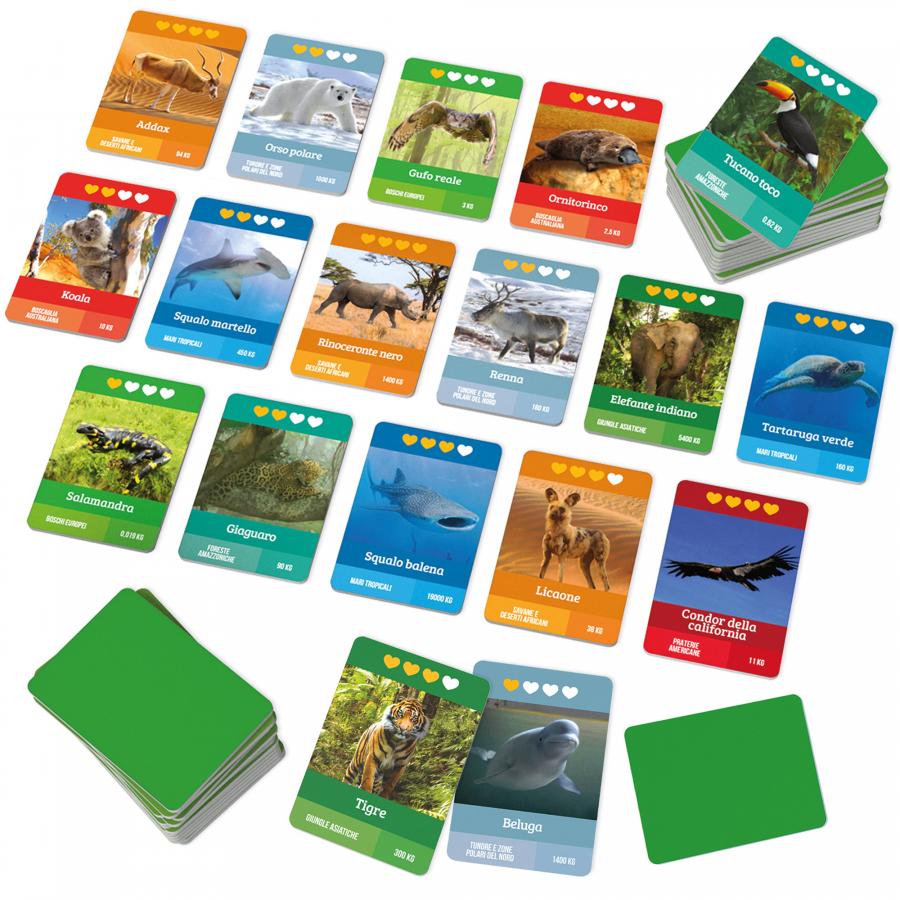 Contenuto: 40 cartine degli animali; 1 scheda rischio estinzione; Regolamento