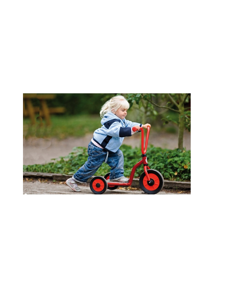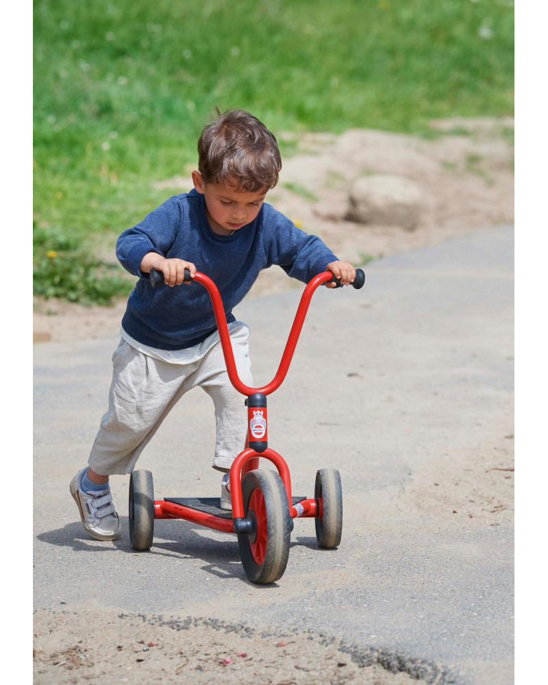Struttura in acciaio con base ampia e ruote in gomma, stimolerà i bambini a sperimentare nuove possibilità di movimento in piena sicurezza. Dimensioni: 59 x 44 x 58 cm. Da 2 a 4 anni.