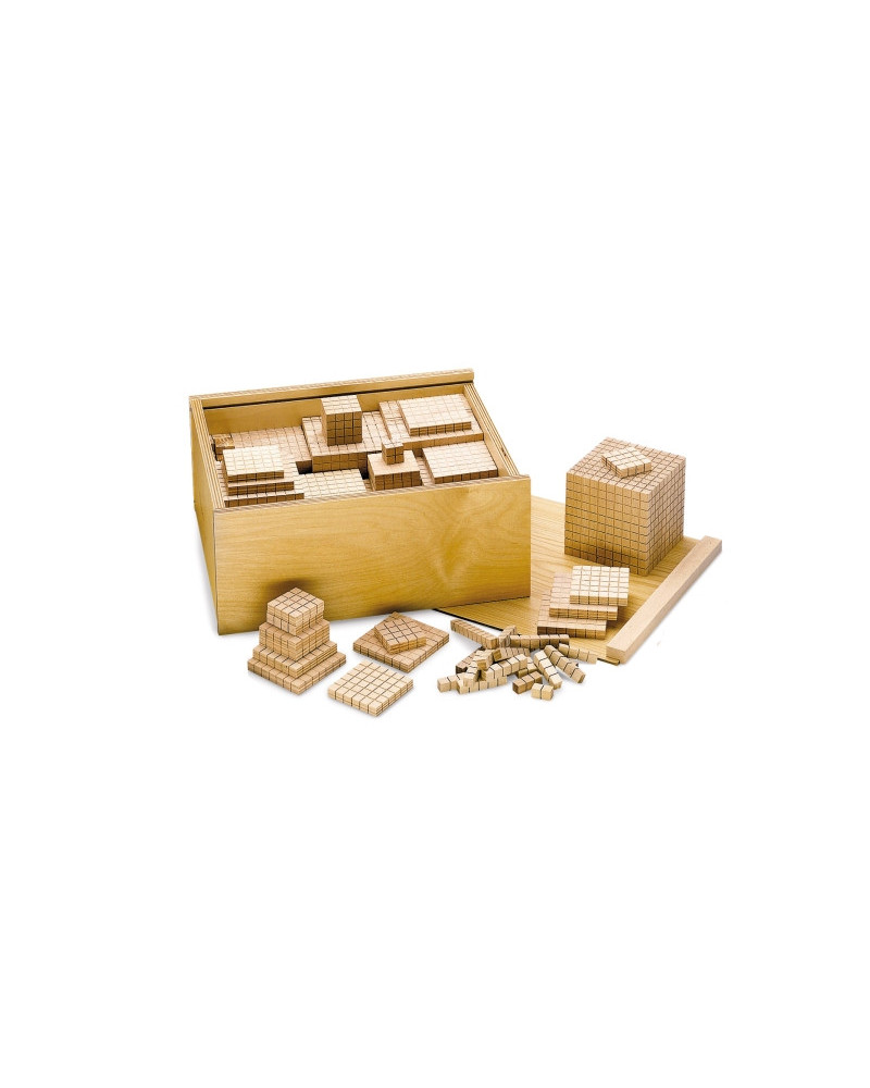 Set completo per l’apprendimento delle basi numeriche 2, 3, 4, 5, 6 e 10. Permette di visualizzare e comprendere concretamente il valore posizionale, la composizione e scomposizione dei numeri, e di sperimentare con diversi sistemi di numerazione. Ideale per attività individuali o di gruppo nella scuola primaria e secondaria. Contenuto: 549 pezzi in legno (unità, aste, piastre e cubi).