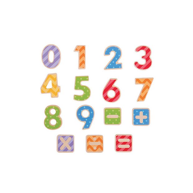 Numeri in legno con retro magnetico che si attacca alle superfici metalliche. Un gioco divertente che aiuta a sviluppare le abilità di ortografia , il riconoscimento di lettere e numeri e permette al bambino di comporre parole, messaggi, operazioni matematiche di base. Numeri magnetici + SIMBOLI in scatola di legno; scatola: cm. 22,2 x 18 x 3 h (56 pezzi).