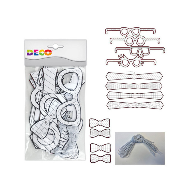PARTY SET 12 pezzi occhiali e papillon da decorare completo di 5 mt di cordoncino