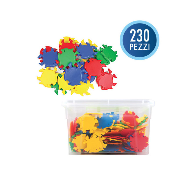 Oceano degli incastri, in pratico bauletto da 230 pezzi assortiti. Dimensioni pezzo cm. 4. Dimensioni bauletto cm. 21x15,5x11,5 h.