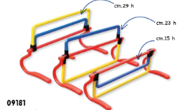 Ostacolo in plastica per attività ginniche e percorsi motori, privi di spigoli o parti acuminate. Ideali sia per interni che per esterni. Regolabile in altezza a seconda delle necessità e dell'età dei bambini che lo utilizzano. Tre diverse altezze: cm. 15, cm. 23 e cm. 29.