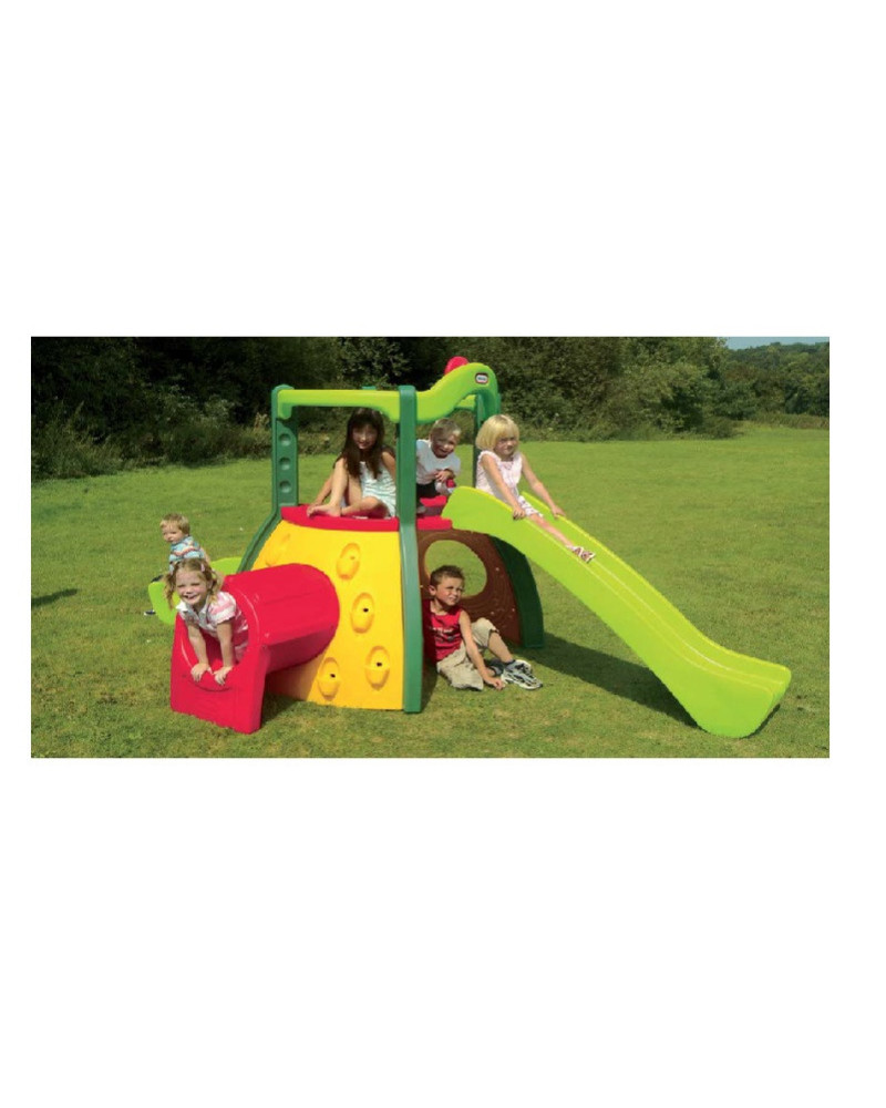 Arrampicatoio gigante con due scivoli, tunnel e piattaforma. All’interno un nascondiglio con labirinto sulla parete. Fornito di semplici istruzioni per un facile montaggio. Dimensioni cm. 360x205x174h. Da 3 a 8 anni