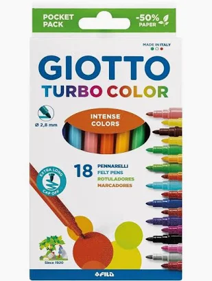 Quando è questione di colorare, i pennarelli Giotto Turbo Color non si tirano mai indietro! Creati con inchiostri innocui e lavabili, sono dotati di una punta fine in fibra super resistente di lunga durata che non rientra mai.