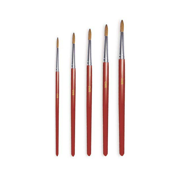 Set 12 pennelli tondi in pelo di bue extrafine chiaro, manico corto laccato.