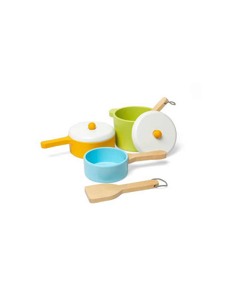 Pentole e padelle in legno con 2 coperchi e 1 mestolo. Da 2+ anni.