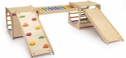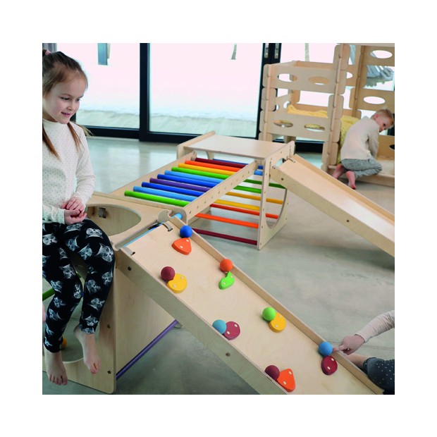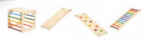 Percorso attività in legno composto da: 2 cubi cm. 58x58x58, 1 scivolo, 1 arrampicata, 1 scala cm.117x41,4.