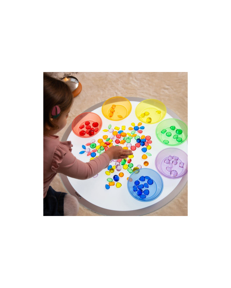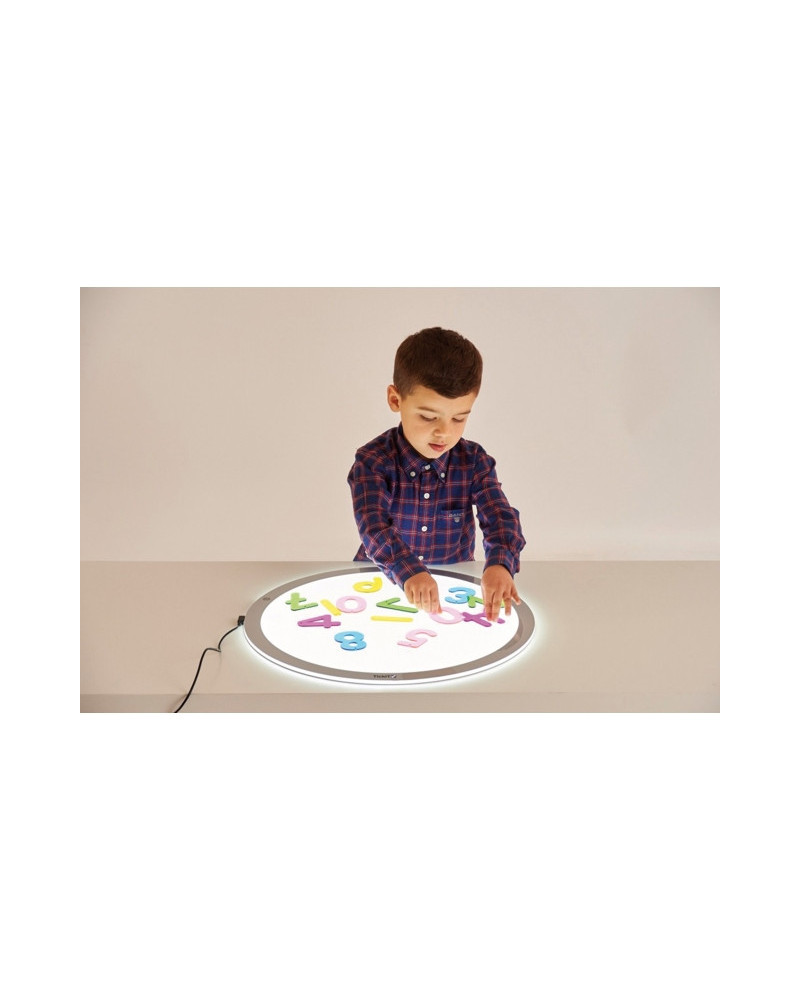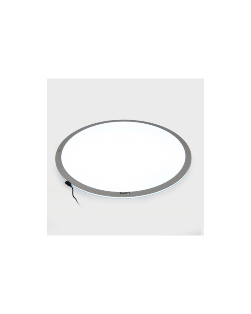 Piano luminoso a led diametro 60 cm. Grazie al connettore magnetico anti-inciampo e alle 3 impostazioni di intensità luminosa, offre uno sfondo luminoso fresco, pulito e luminoso, ideale per lo studio di luci, colori e forme, o per lavori di gruppo mirati su un'ampia gamma di argomenti. Sottile e con bordi arrotondati, il piano luminoso è resistente, portatilie e facile da pulire. Semplice da usare, con funzione di blocco per evitare spegnimenti accidentali. Tutti i pannelli luminosi tickit® hanno una classe energetica A+ e includono un adattatore di alimentazione universale con alimentazione di rete a bassa tensione e istruzioni. Fornito in kit di montaggio. Adatto all'uso da parte dei bambini sotto la supervisione di un adulto.