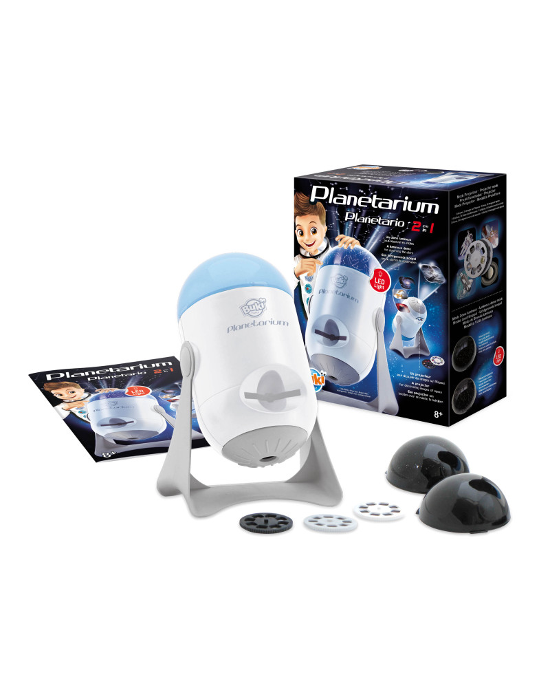 Esplora lo spazio con il planetario 2 in 1. Modalità Volta luminosa: proietta le stelle e le costellazioni. Modalità Proiettore: 24 immagini per scoprire la conquista dello spazio e delle stelle. Istruzioni illustrate a colori. Da 8 anni.