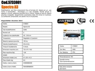 • STARTER PACK INCLUSO: La plastificatrice Spectra A3 include uno starter pack con 10 pouches per essere funzionale da subito.