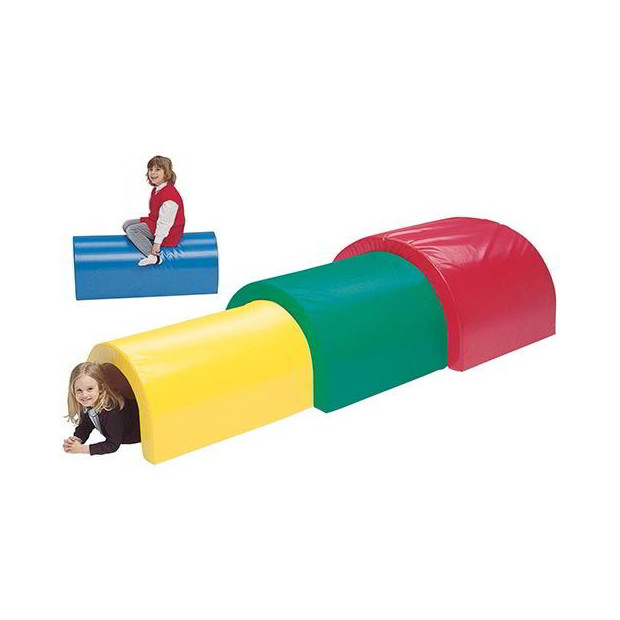 Percorso di tunnel decrescenti che aiuta il bambino a raggiungere un buon controllo motorio che gli permette di mettersi in relazione con lo spazio rafforzando la fiducia nelle proprie capacità. I singoli elementi tunnel, sovrapponibili, consentono di sviluppare una struttura lunga fino a 3 mt. Rivestimento ecopelle.