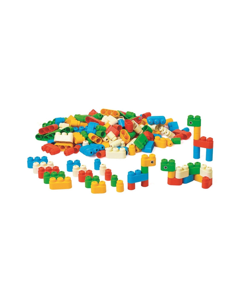Confezione da 180 mattoncini in contenitore plastico con coperchio, ricca di elementi decorativi. I mattoncini sono delle dimensioni giuste per i più piccoli.
