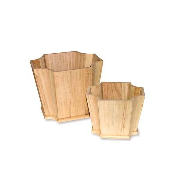 Oggetti in legno ideali come base per decoupage, pirografia, pittura ecc. Set da 2 portavasi di diverse dimensioni. Dimensione del più grande cm. 22x23x27 h