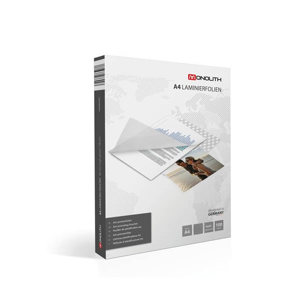 Pouches per plastificatrice scatola 25 fogli. Spessore 80 micron, finitura lucida. Disponibile in vari formati.