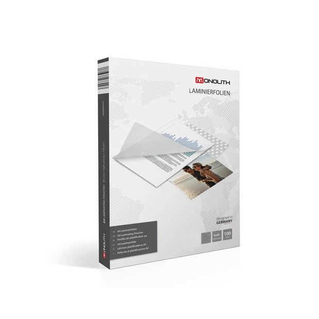 Confezione 100 fogli per plastificatrice, all'interno tutte le varie misure disponibili dall'A4 all'A7.