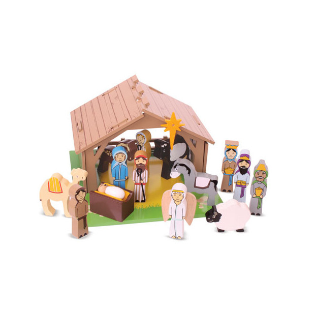 Presepe completo in legno da 16 pezzi; Dimensioni capanna: cm 33×26