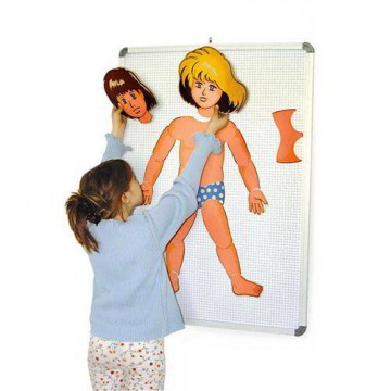 Lo schema corporeo puzzle è un grande e maneggevole puzzle di legno per bambini dai 4 anni in su. Attraverso i tasselli, differenti per il volto e per i genitali, il bambino impara a comporre la figura di un maschio o di una femmina. Questo gioco aiuta i piccoli nel consolidare lo schema corporeo, cioè la rappresentazione mentale del corpo umano, della disposizione di arti e organi e del loro rapporto con lo spazio.