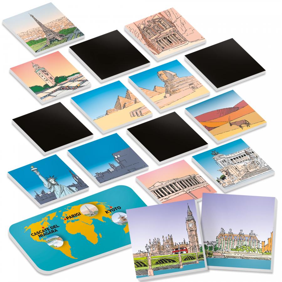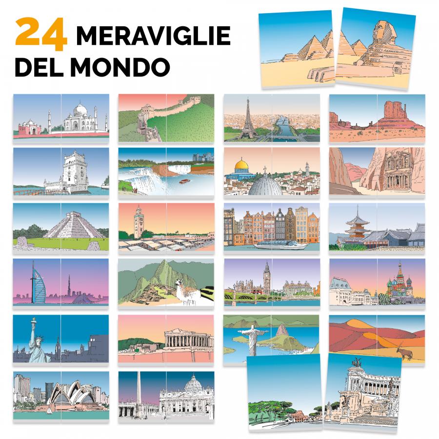 La Grande muraglia, la Città eterna, le Piramidi egizie... Quali sono le tue destinazioni? Ricomponi le immagini e completa per primo il tour delle meraviglie! Un gioco geografico che stimola la memoria visiva e la strategia.