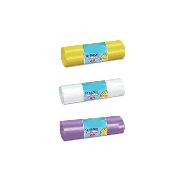 10 sacchi neri per rifiuti cm.70 x 110. Disponibili in 3 colori : giallo, bianco e viola.