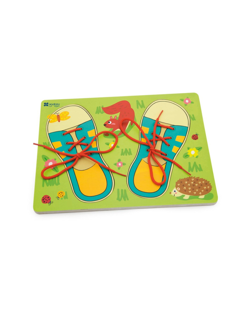 Utile per imparare le allacciature delle scarpe. Sviluppa la motricità fine. Dimensioni del prodotto: 30 x 22,5 x 1,3 cm.