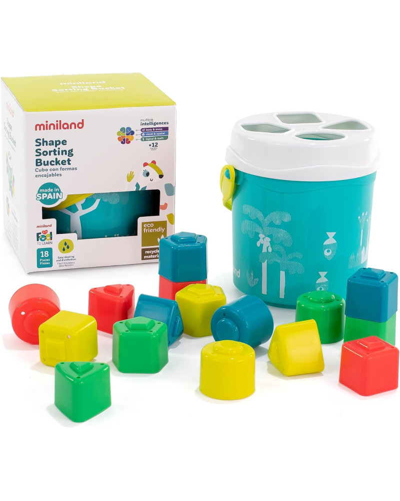 Secchiello delle forme da infilare composto da 16 pezzi che aiuta i più piccoli a riconoscere forme e colori diversi, esercitare la coordinazione occhio-mano e stimolare il ragionamento logico. Realizzati con materiali riciclati e riciclabili, i 16 pezzi possono essere utilizzati come stampi per la sabbia, e per far "piovere" l'acqua attraverso i fori. Dimensione secchiello diametro 14 cm. Da 12 mesi.