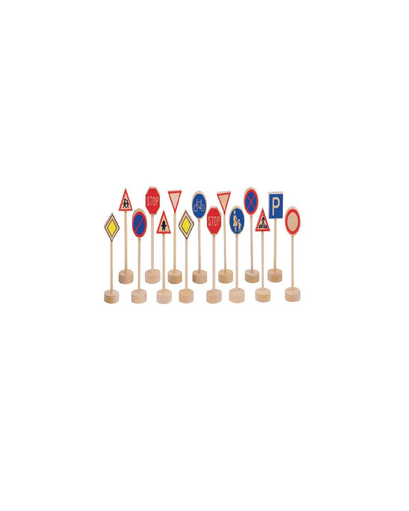 Confezione da 12 pezzi in legno per l'educazione stradale. Altezza 11 cm. Da 4+ anni.