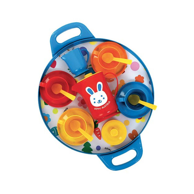Servizio da Tè con Vassoio di diametro 27 cm. Realizzato con plastica resistente e di grande qualità. In totale 18 pezzi.